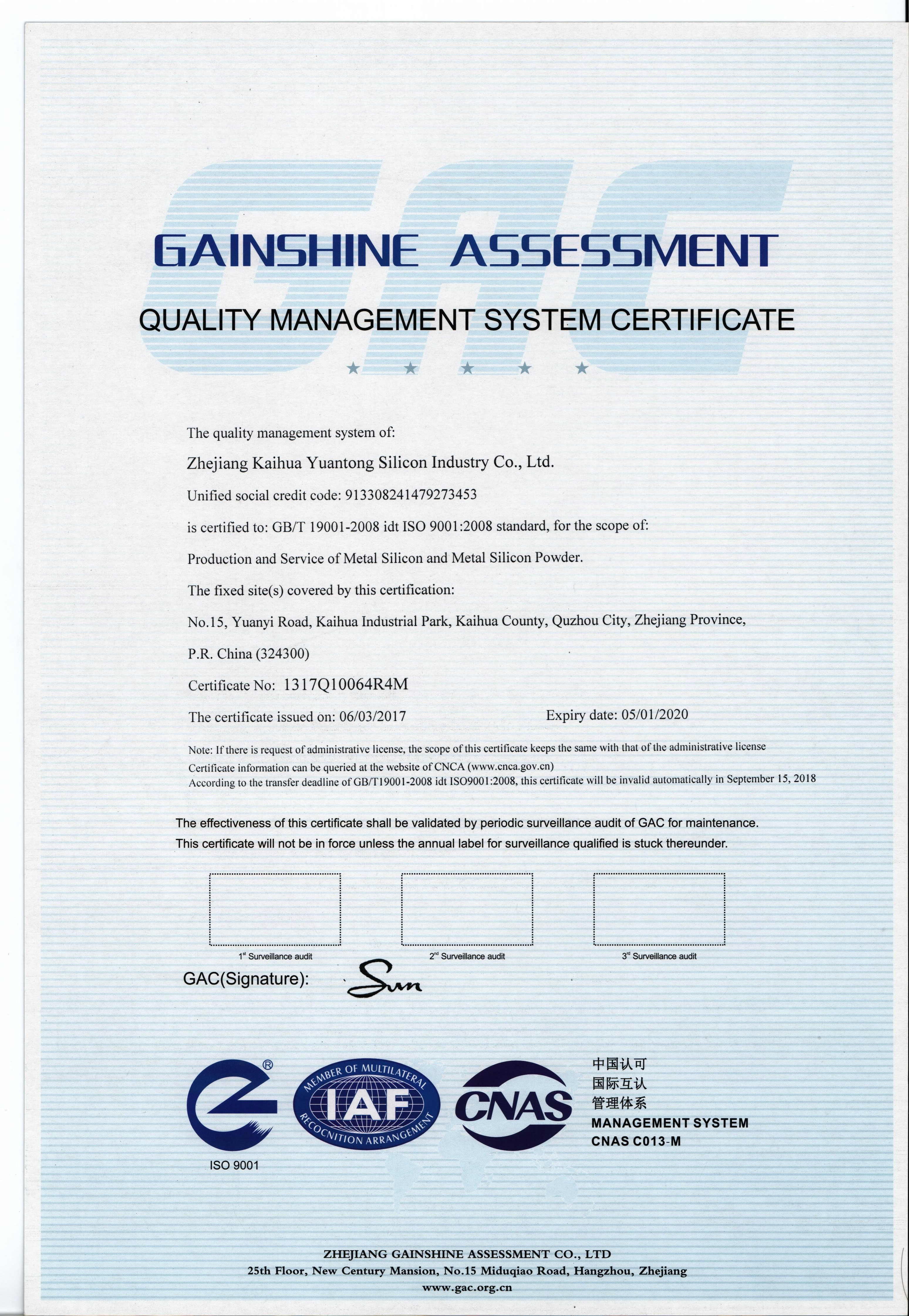 - 質量管理(lǐ)體(tǐ)系證書(shū)(ISO9001)