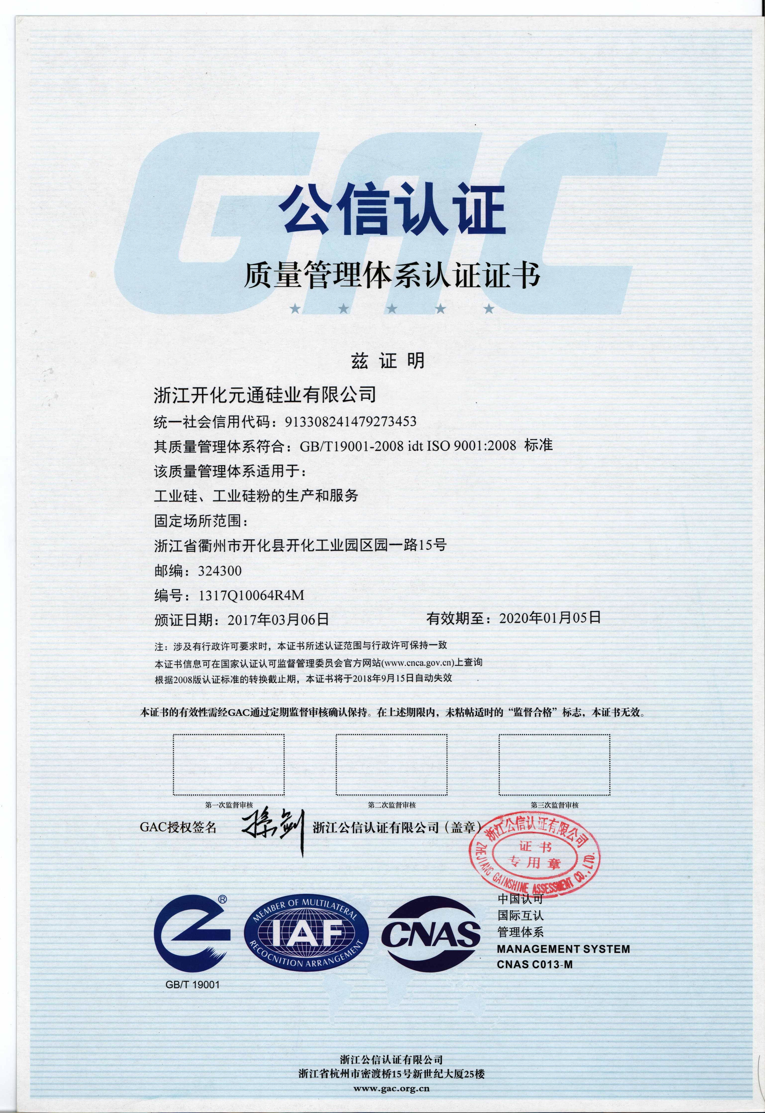 - 質量管理(lǐ)體(tǐ)系證書(shū)(ISO9001)