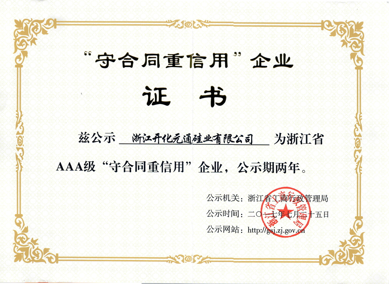 - 浙江省AAA守合同重信用(yòng)企業(yè)